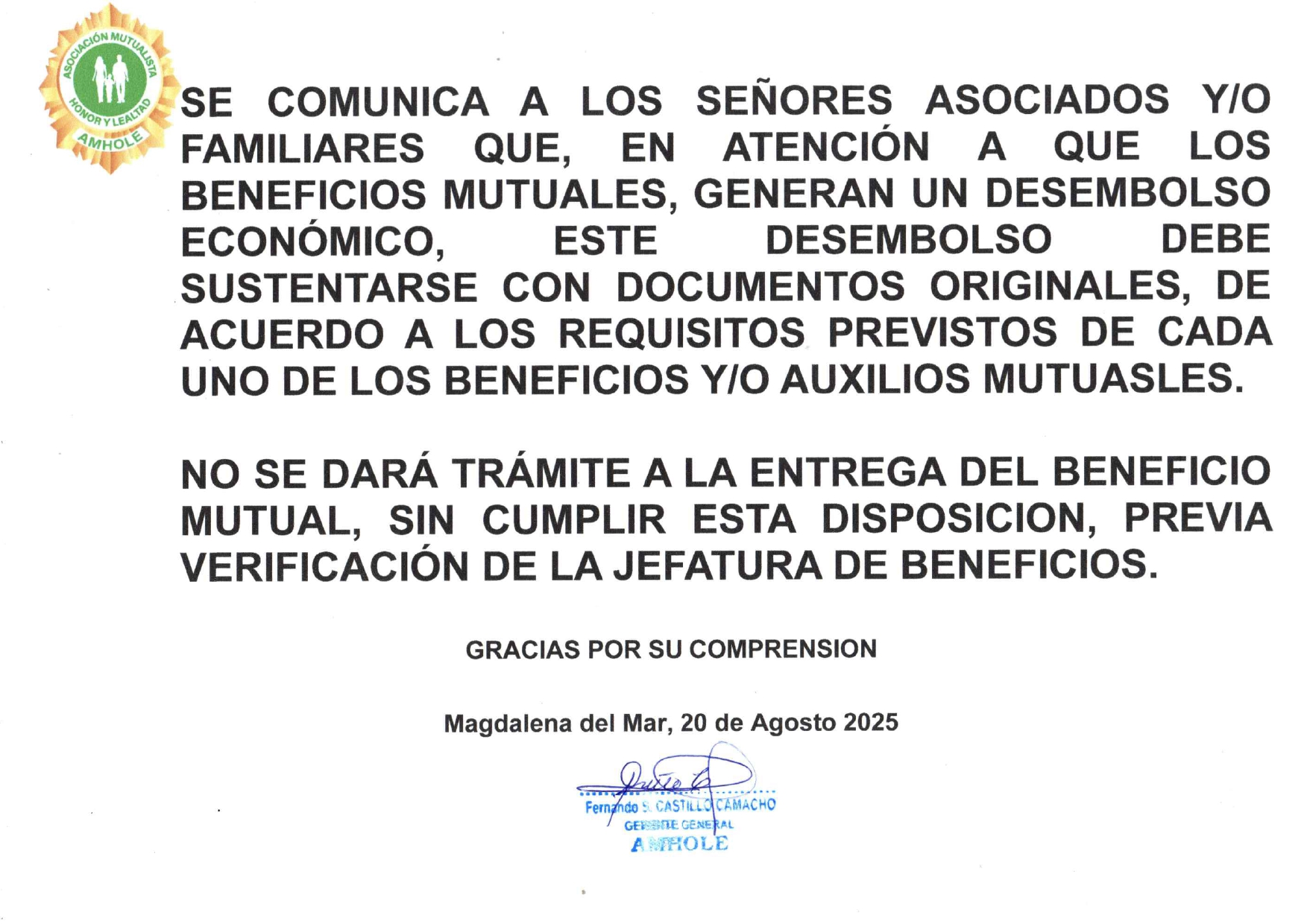 Este beneficio se otorga por FALLECIMIENTO del ASOCIADO TITULAR. El otorgamiento del beneficio se dá mediante el monto de apoyo económico establecido o el servicio funerario.